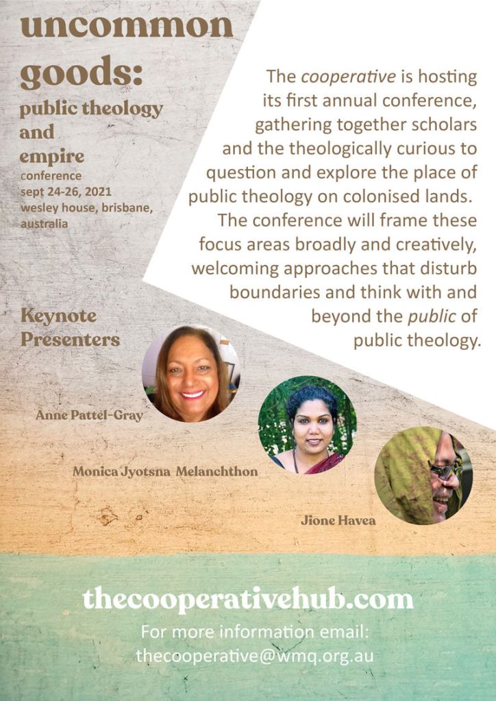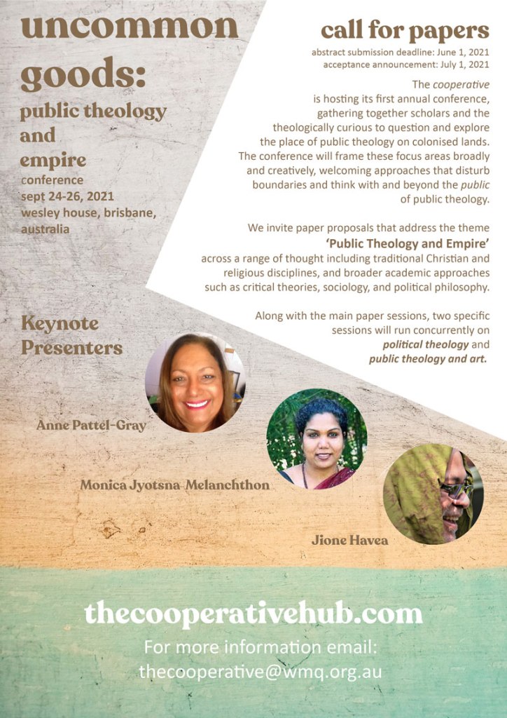 The organisation of a symposium, however, is an interesting adventure. I would first like to thank all the keynote speakers – Glenn Loughrey, Dorothy Lee, John McDowell, Rod Pattenden, and Chris Bedding – who, thanks to their wonderful contribution, and their commitment to continuing the conversation in the interdisciplinary space, enabled many others to experience a wide range of creative theological intersections. From Chris Bedding’s Pirate Faith to John McDowell’s analysis of theology and the art of popular cinema. From the confronting truths of Glenn Loughrey’s investigation of the impact of neo-colonialism and nostalgia on the perception of Aboriginal art and spirituality to the poetry of Dorothy Lee and her exploration of the transfiguration in the Gospel and poetry. To, finally, a reflection on what’s next by Rod Pattenden with his exploration of the tensions that exist between art and theology. These contributions gave us much food for thought and conversation.